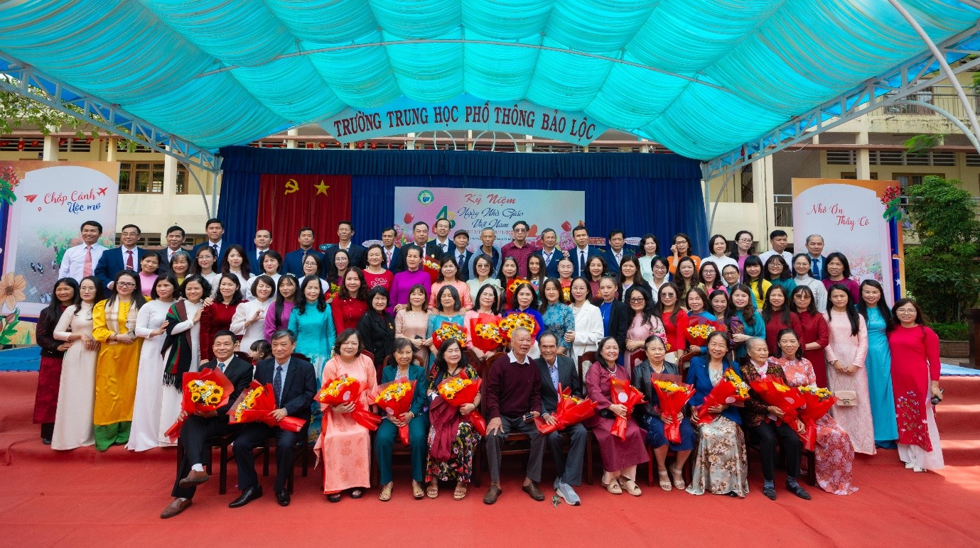 Trong phần tri ân, nhà trường gửi tặng hoa đến các thầy cô giáo về hưu – những người đã góp phần đặt nền móng xây dựng trường THPT Bảo Lộc như hôm nay. Ấn tượng nhất trong buổi lễ là chương trình nghệ thuật với chủ đề “NGHỀ GIÁO TÔI YÊU” do tập thể HĐSP nhà trường thể hiện. Các ca khúc “Về lại mái trường xưa”; “Em vẫn như ngày xưa – Mặt trời bé con”; Liên khúc “Nhớ ơn thầy cô – Bụi phấn – Con đường đến trường – Nghề giáo tôi yêu” đã lắng lại như một lời thổ lộ chân thành về tình yêu nghề, yêu học trò, yêu từng trang giáo án còn thơm mùi phấn trắng. Giai điệu vang lên giữa sân trường buổi sáng se lạnh của phố núi khiến nhiều người không giấu được xúc động. Chương trình văn nghệ không chỉ là buổi biểu diễn thường niên mà còn là dịp để các thầy cô thêm thấu hiểu giá trị nghề nghiệp, nuôi dưỡng tình yêu với bục giảng, và để học trò gửi đến thầy cô mình lòng biết ơn trọn vẹn nhất.