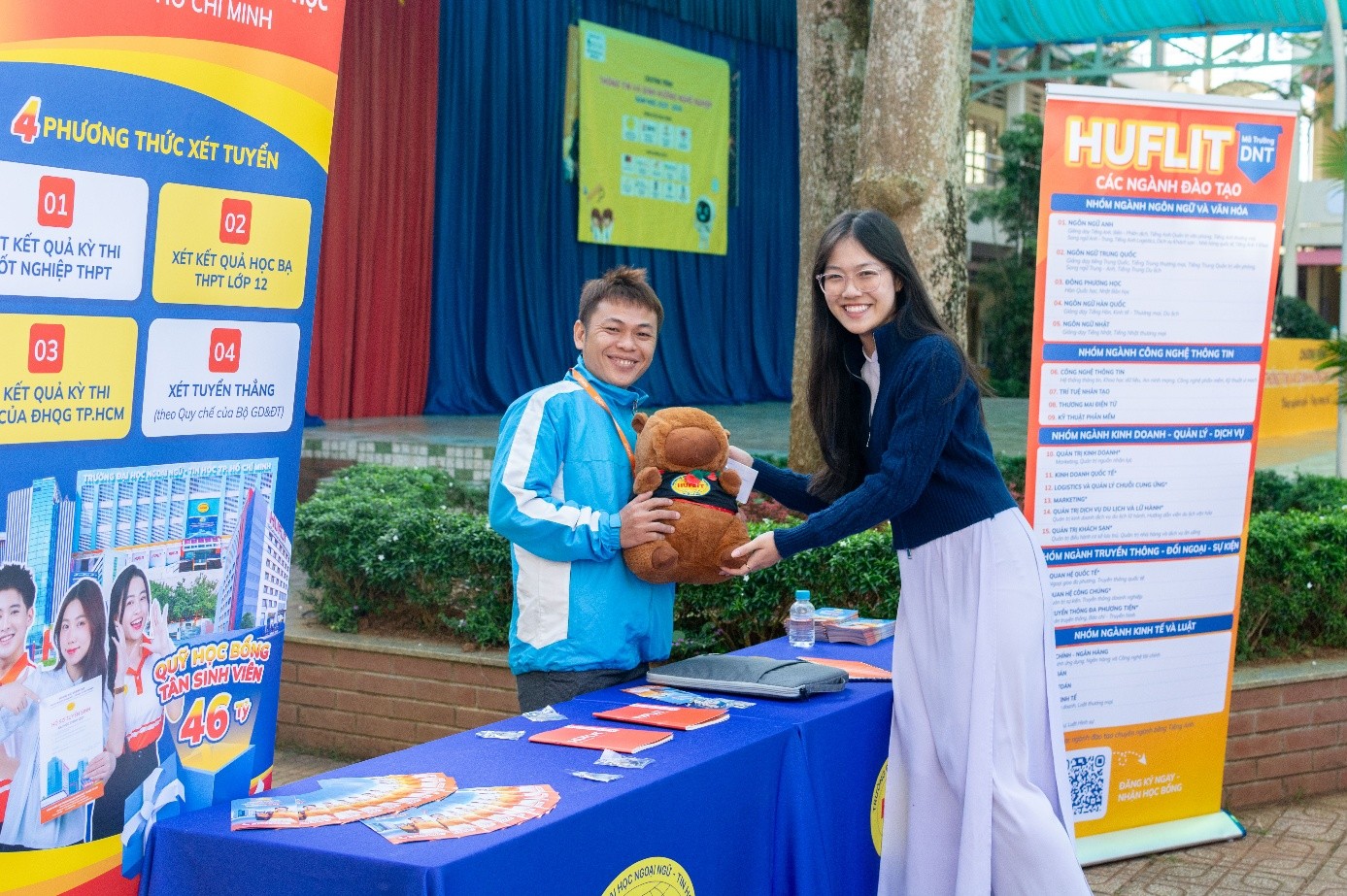 Xuyên suốt chương trình, đại diện các trường đã cung cấp nhiều thông tin bổ ích về ngành đào tạo, điều kiện xét tuyển, môi trường học tập, cơ hội thực tập, việc làm và các chương trình liên kết quốc tế. Không khí buổi tư vấn trở nên sôi nổi khi các em học sinh khối 10, 11, 12 tích cực đặt câu hỏi liên quan đến định hướng nghề nghiệp, lựa chọn ngành học, học phí, học bổng và cơ hội phát triển bản thân. Các em cũng hào hứng tham gia các hoạt động giao lưu và nhận nhiều phần quà hấp dẫn từ ban tổ chức và các trường đại học.