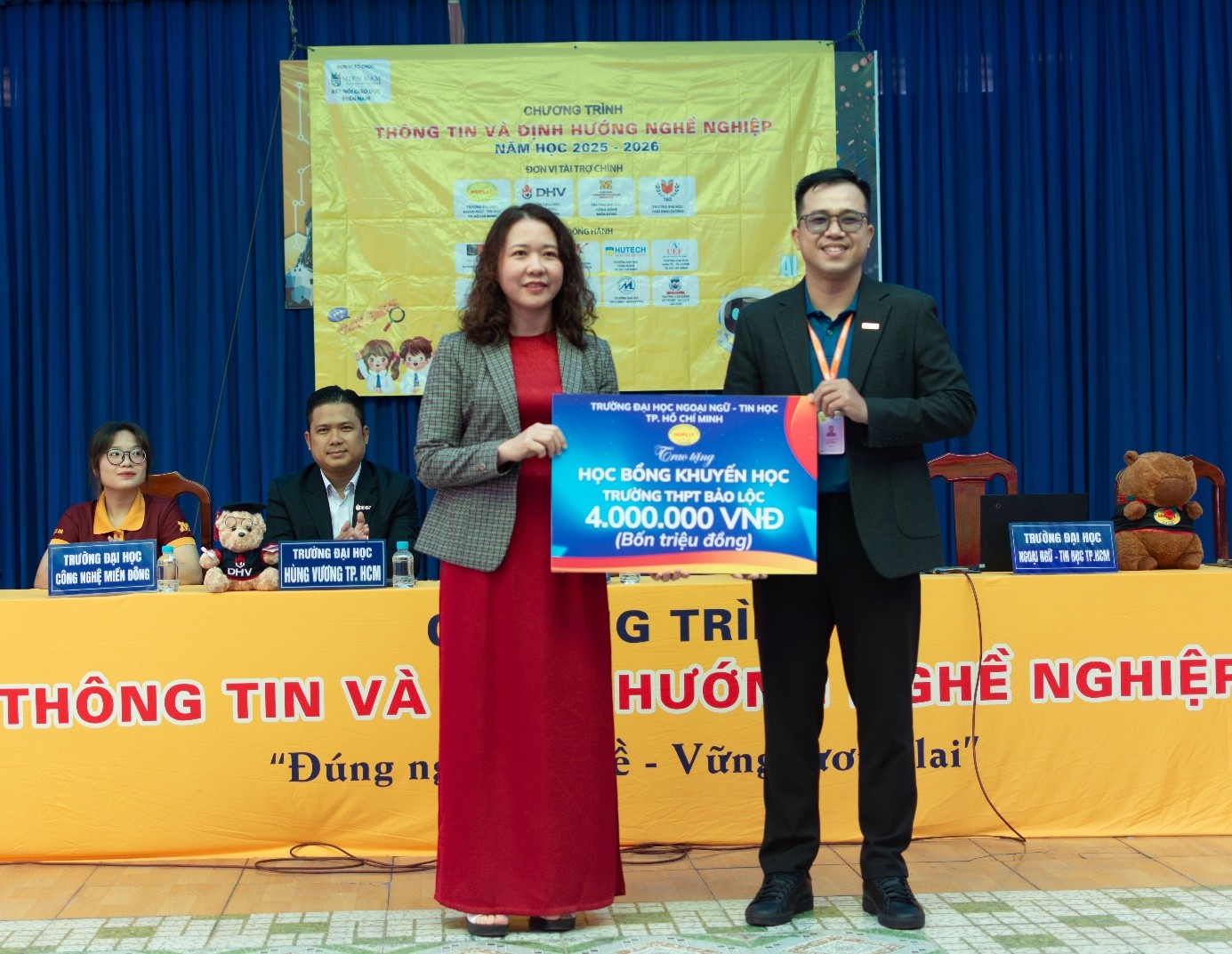 Đặc biệt, Trường Đại học Ngoại ngữ – Tin học TP. Hồ Chí Minh đã trao tặng 4.000.000 đồng vào Quỹ Khuyến học của nhà trường, góp phần động viên tinh thần học tập của học sinh.