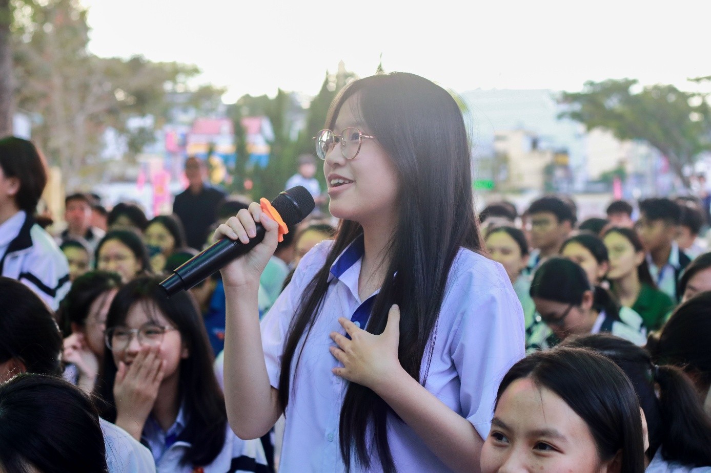 Một điểm nhấn quan trọng của chương trình là phần giao lưu, hỏi – đáp trực tiếp giữa học sinh với Ban tư vấn. Nhiều học sinh khối 12 đã mạnh dạn đặt câu hỏi liên quan đến việc chọn ngành theo đam mê hay theo nhu cầu xã hội, cơ hội việc làm sau tốt nghiệp, sự khác biệt giữa các hệ đào tạo, điều kiện tuyển sinh, học phí, cũng như cơ hội học tập, làm việc trong và ngoài nước. Các thắc mắc đã được Ban tư vấn giải đáp cụ thể, rõ ràng, góp phần tháo gỡ băn khoăn và giúp học sinh thêm tự tin trong việc lựa chọn hướng đi cho tương lai.