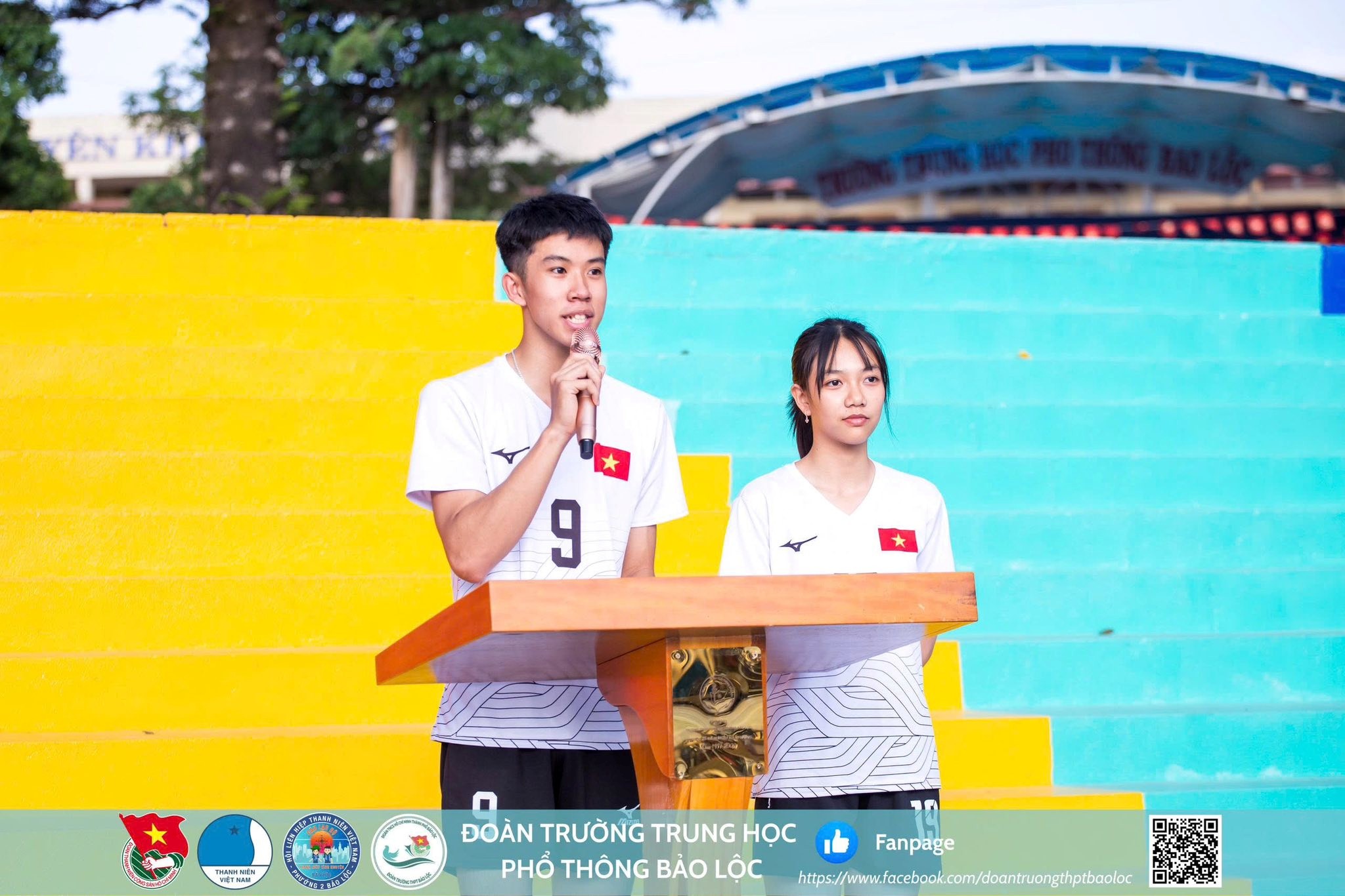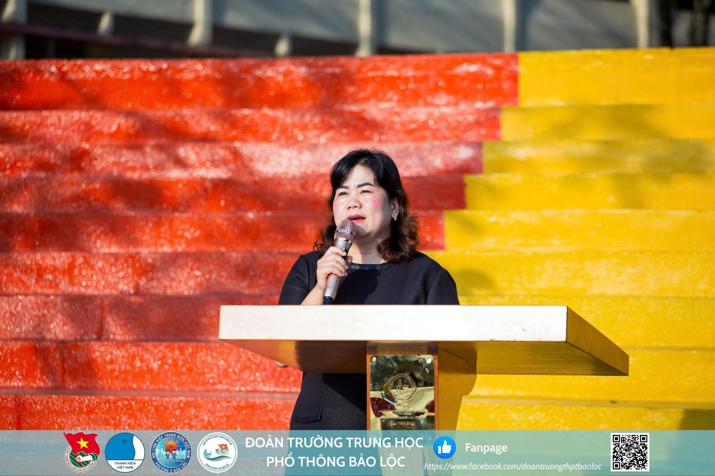 Buổi lễ diễn ra trong không khí rộn ràng với sự hiện diện của cô Hoàng Thị Thu Huyền - Phó Hiệu trưởng phụ trách Nhà trường, thầy Nguyễn Văn Dần - Bí thư Đoàn trường, cùng quý thầy cô tổ Lịch sử - KTPL - GDTC - QPAN. Trong không khí sôi động ấy, cô Hoàng Thị Thu Huyền đã dành những lời chia sẻ đầy tâm huyết về việc cân bằng giữa học tập và rèn luyện thể chất là điều tất yếu của học sinh trong thời đại đổi mới, đồng thời, gửi gắm sự kỳ vọng rằng CLB sẽ là nơi tập luyện thể thao, tạo dựng môi trường phát triển cho học sinh toàn trường và là biểu tượng của tinh thần đoàn kết, khát vọng vươn lên của tuổi trẻ Bảo Lộc.