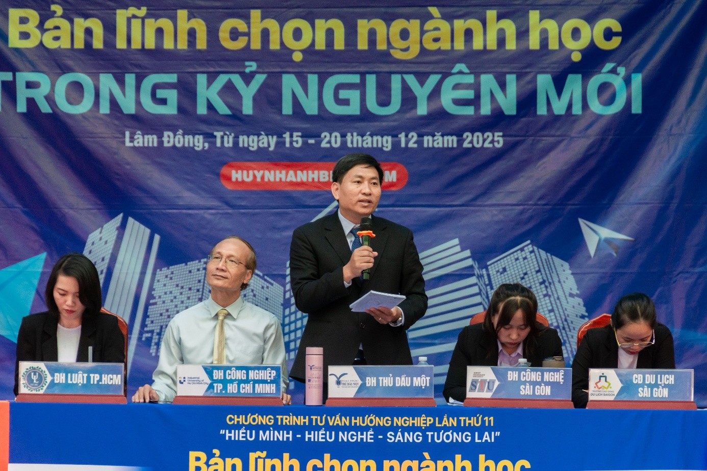 Tham gia chương trình có sự đồng hành của nhiều cơ sở đào tạo uy tín, gồm: Trường Đại học Luật TP.HCM, Trường Đại học Công nghiệp TP.HCM, Trường Đại học Yersin Đà Lạt, Trường Đại học Văn Hiến, Trường Đại học Greenwich Việt Nam, Trường Cao đẳng Du lịch Sài Gòn, Trường Cao đẳng Công nghệ Thủ Đức, Trường Cao đẳng Kinh tế TP.HCM, cùng đại diện Du học PowerPlus. Đặc biệt, TS. Huỳnh Anh Bình – Giám đốc Trung tâm Hướng nghiệp TP.HCM đã mang đến nhiều chia sẻ sâu sắc, thiết thực về kỹ năng nhận diện thế mạnh bản thân, nuôi dưỡng ước mơ và lựa chọn ngành nghề phù hợp trong bối cảnh hiện nay.