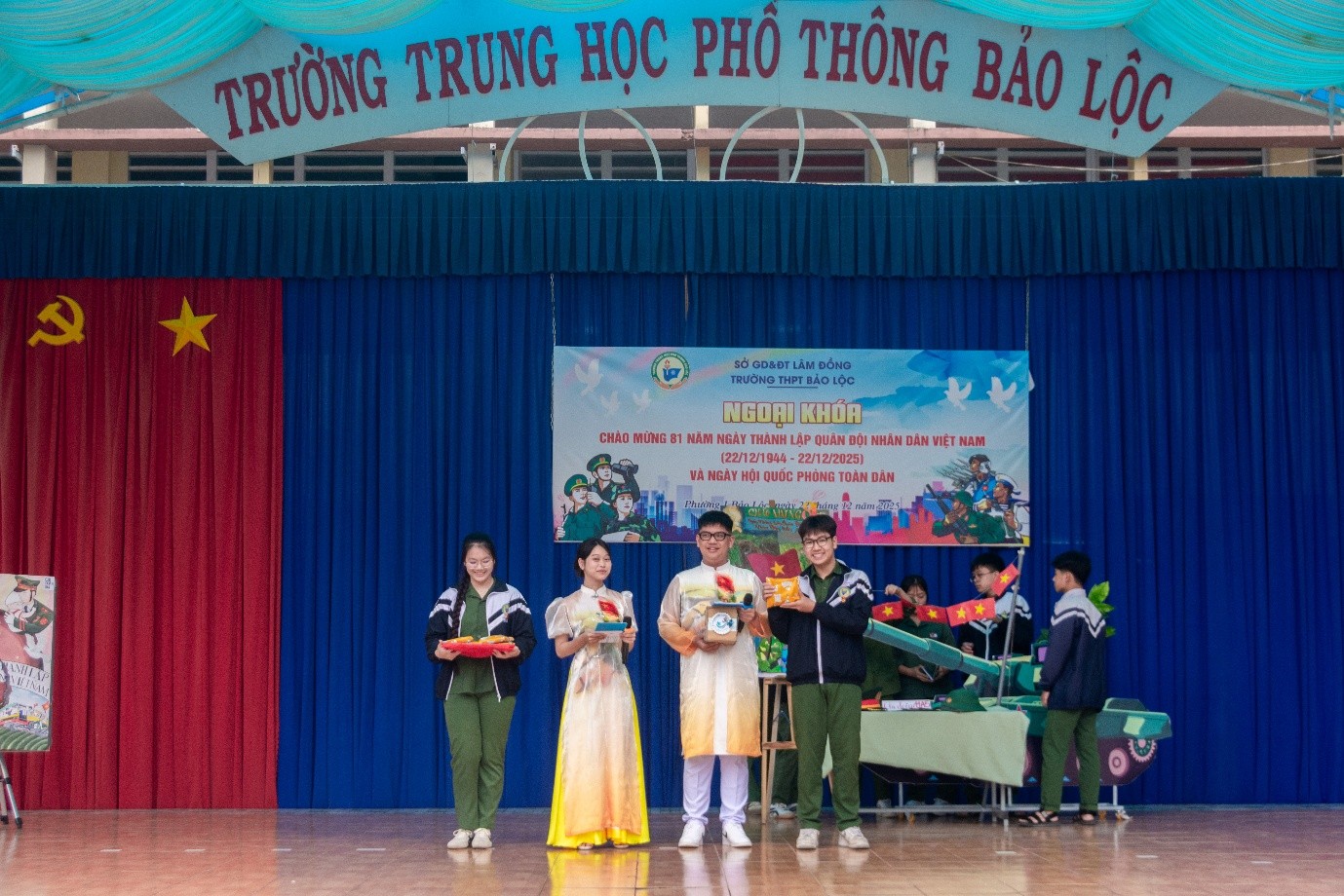 Hoạt động kỷ niệm 81 năm Ngày thành lập Quân đội nhân dân Việt Nam và Ngày hội Quốc phòng toàn dân tại Trường THPT Bảo Lộc đã diễn ra thiết thực, ý nghĩa và giàu tính giáo dục, góp phần bồi đắp lý tưởng sống, khơi dậy niềm tự hào dân tộc và tinh thần trách nhiệm của thế hệ trẻ đối với sự nghiệp xây dựng và bảo vệ Tổ quốc Việt Nam xã hội chủ nghĩa.