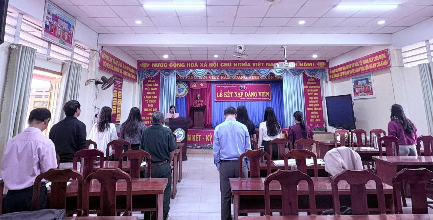 Thực hiện Quyết định số: 159-QĐ/ĐU, ngày 29/01/2026 của Đảng ủy phường 1 Bảo Lộc về việc kết nạp đảng viên, được sự nhất trí của Đảng ủy trường THPT Bảo Lộc, chiều ngày 03/02/2026, Chi bộ 3 – Đảng bộ Trường THPT Bảo Lộc long trọng tổ chức Lễ kết nạp đảng viên mới cho quần chúng ưu tú Phạm Thị Nga – Phó Bí thư Đoàn trường, giáo viên bộ môn Vật Lý vào hàng ngũ của Đảng Cộng sản Việt Nam. Buổi lễ diễn ra trong không khí trang nghiêm, đúng trình tự, thủ tục theo Điều lệ Đảng.