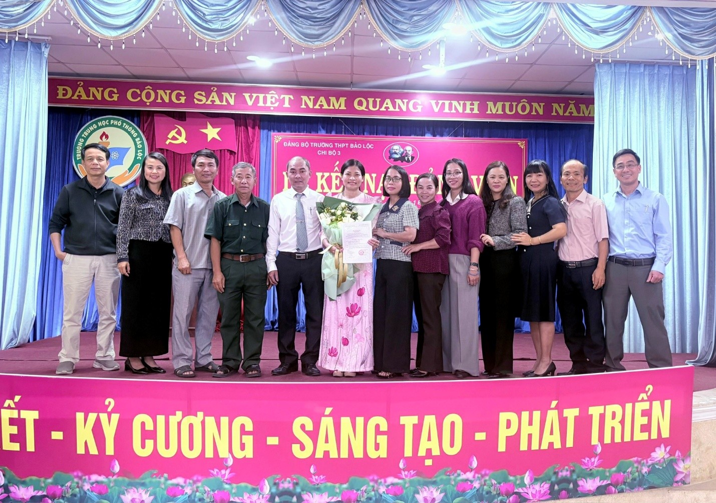 Tham dự buổi lễ có đại diện Đảng ủy Trường THPT Bảo Lộc, cùng toàn thể đảng viên Chi bộ 3. Buổi lễ do đồng chí Hoàng Văn Thái – Bí thư Chi bộ chủ trì.